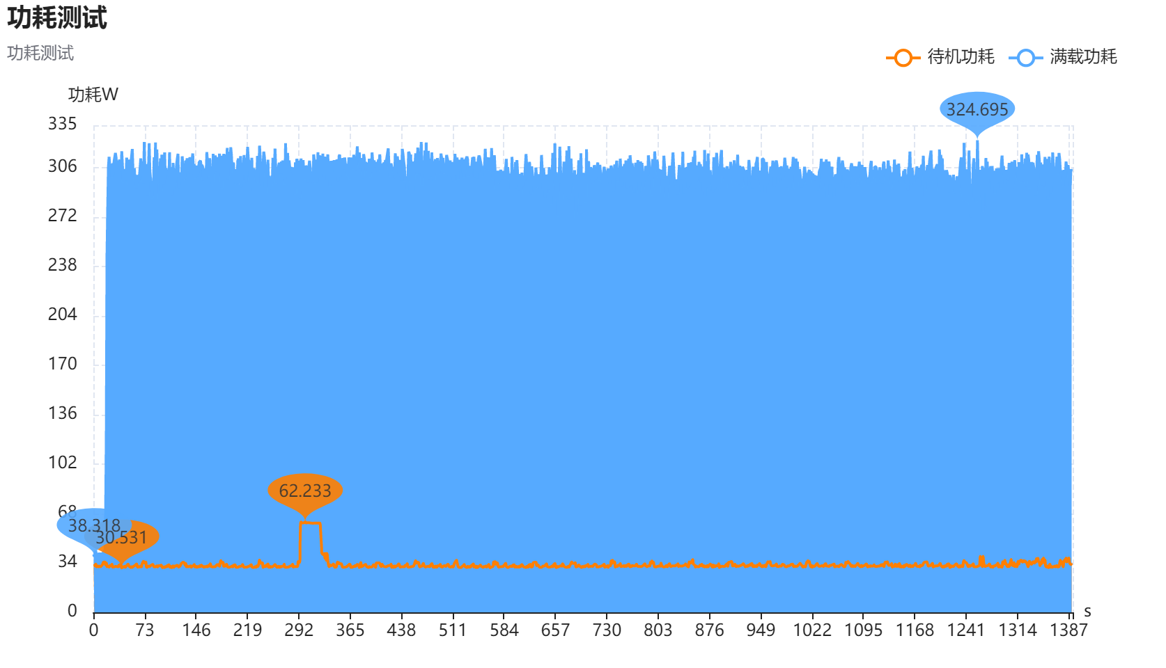 通过我们手中的PCAT套件,可以分别精确地测量显卡PCI-E、外接电源接口瓦数,显卡最大功耗在3DMark Time Spy压力测试中获得,待机功耗则是在进入系统后记录1分钟取平均值。