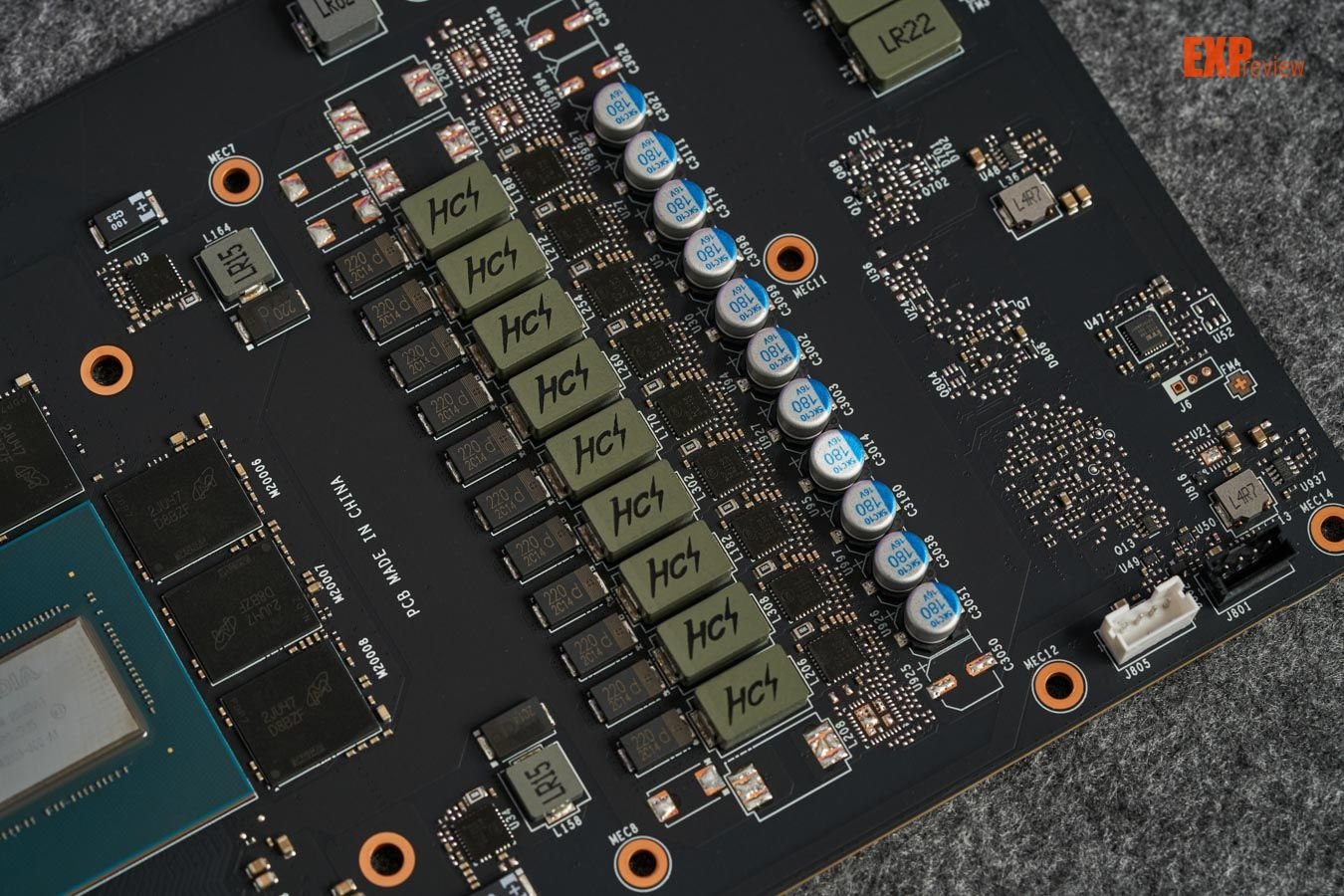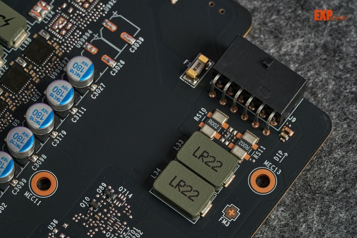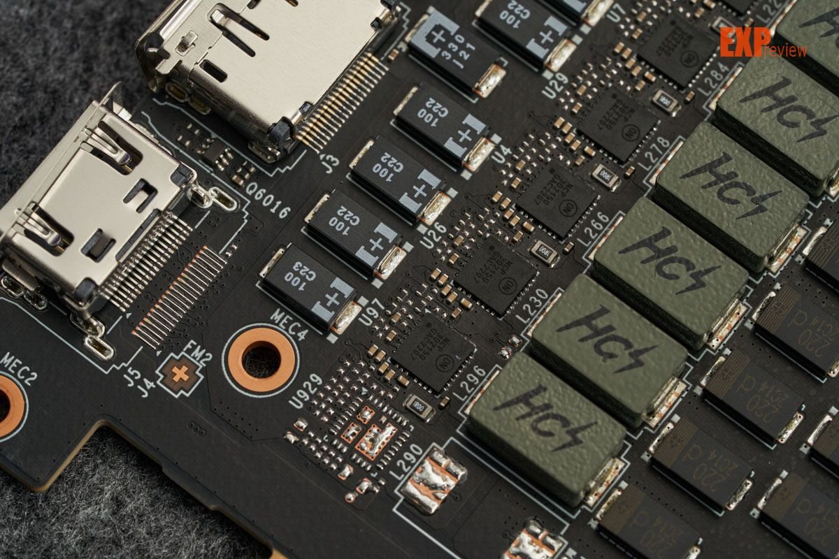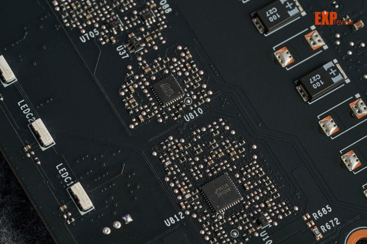 而在显卡的供电方面,微星GeForce RTX 4080 SUPRIM X 超龙是用了18+3相的供电,核心供电用的MOSFET是来自安森美的50A NCP302150,而PWM控制芯片则是uP9512R。这样的供电规格也是比较主流。