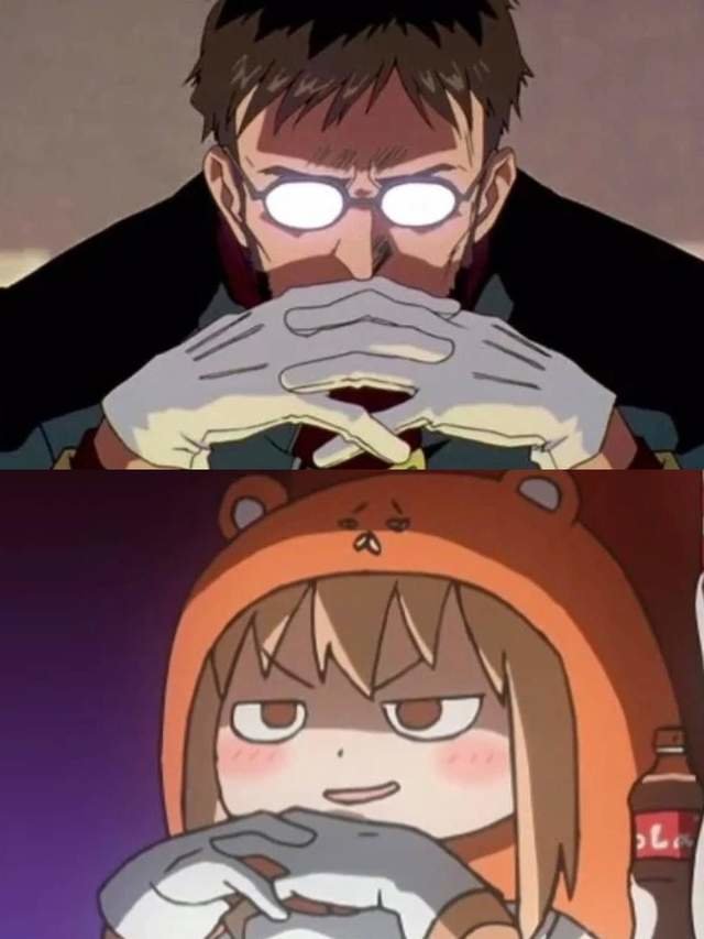 也许你没看过《干物妹小埋》这部番,但你一定见过其软萌形象卡通,一度成为朋友圈大家超爱用的头像。如此可爱的小埋在番中多次摆出EVA中碇司令的经典poss,在第一季第11集中模仿EVA中的seele组织的会议场景,各种各样的小埋开会真是可爱拉满。