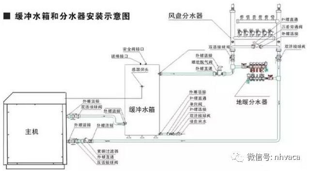 当系统中补水一半时,调试就可开始了。流入主机与水泵的水,均是纯净不含气的,热量会很快输送到末端,调试时间大大减少。笔者早期从事空调施工,调试一户别墅,没有三到四小时不能结束,因为水中含气太多,流量开关经常报警,主机换热不够也会高压保护,风盘气堵后,效果不明显。都让调试时间大大延长。在有缓冲水箱的机房系统,一般一到二小时即可完成调试工作。