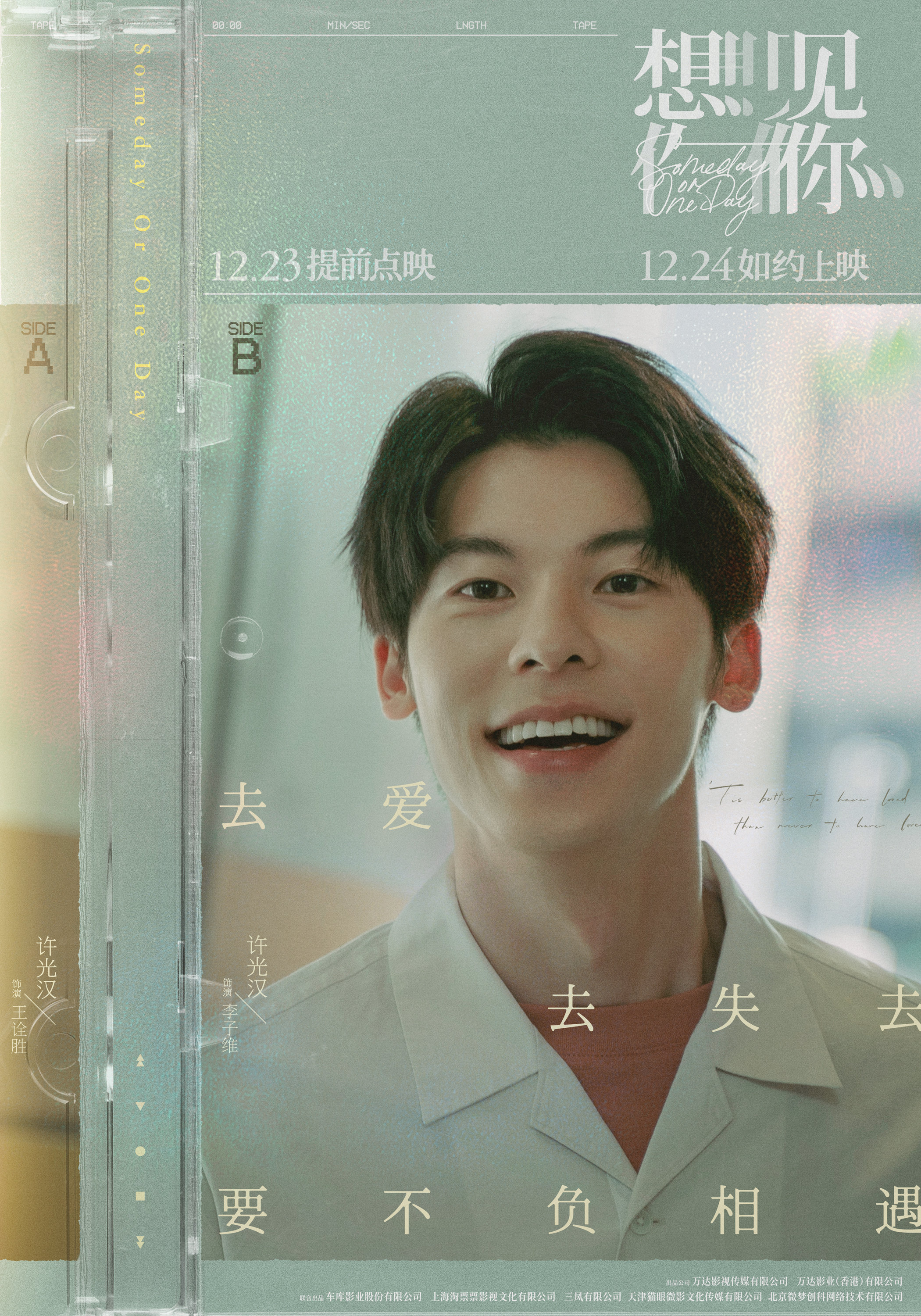 同时发布的角色海报以磁带的A面和B面元素分别展示了角色人物的不同状态。由柯佳嬿所饰演的“黄雨萱”和“陈韵如”的角色海报也一反观众所熟悉的角色印象,越加成熟却若有所思的黄雨萱,和带着希望看向远处的陈韵如,二人身上似乎多了一些新的角色使命,她们经历了哪些新的经历,不禁令人好奇。而由许光汉饰演的“李子维”依旧是一副无所畏惧却笑容暖人的形象,与目光沉着坚定的“王诠胜”形成了明显的反差。由施柏宇饰演的“莫俊杰”单手抚着耳朵,似乎预示了角色本身可能将获得更多勇敢的力量继续前行。此外,由金世佳饰演的“杨皓”也首次现身,他“若有所思”地按动下随身听,与其他角色将会产生什么关联,着实令人好奇。角色海报的不同状态似乎也预示了电影版《想见你》将会有更多的惊喜等待着观众去影院亲自发掘。