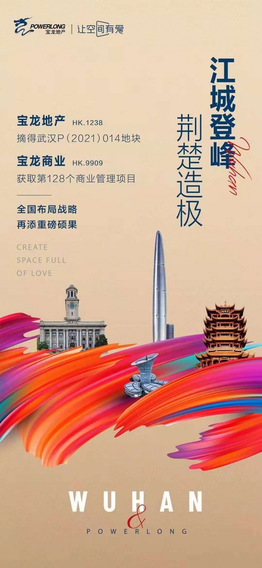 同年9月30日,宝龙地产竞得湖北省武汉市新洲区阳逻P(2020)098号、P(2020)099号地块。项目占地面积约15.4万平方米,建筑面积28.9万平方米,位于新洲阳逻最核心区域,该项目是宝龙进入武汉的首个项目,命名武汉宝龙世家。