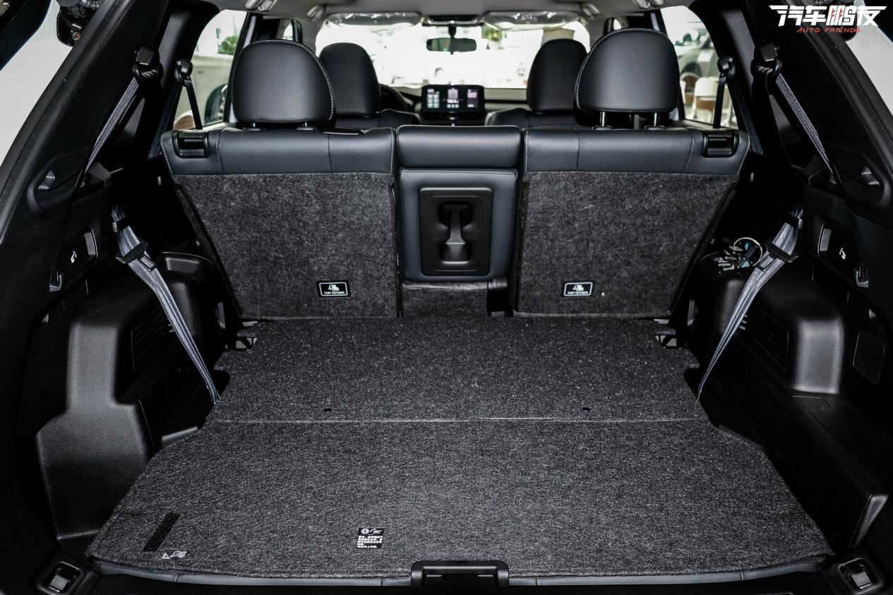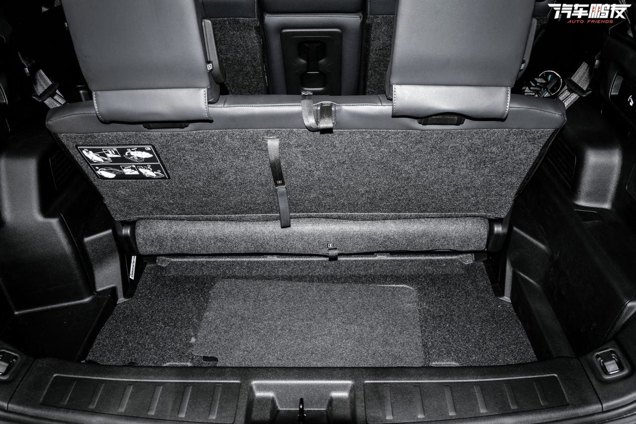 比较好的一点是,第三排座椅可以收纳进地台下方,可以完全不占用后备厢空间。即便第三排在使用时,由于地台做了“掏空”处理,目测放登机箱+背包是完全没问题的。所以,全新欧蓝德想选7座的话,最好实际去体验一下,看看第三排是否必要。