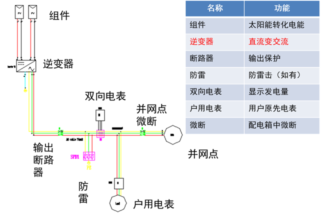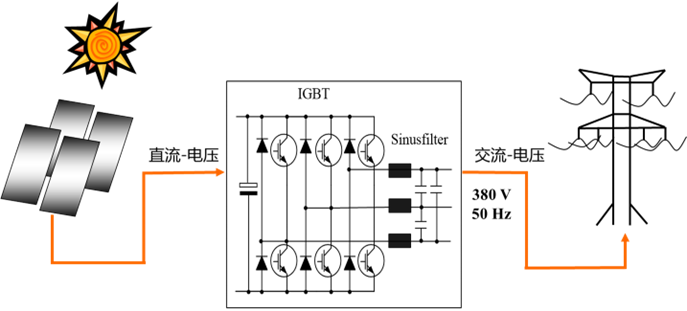 逆变器的主要功能是将组件产生的直流电转换成可以并网的交流电: