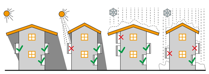 请勿安装在太阳长期直射区域,以避免逆变器内部高温导致的功率降额。