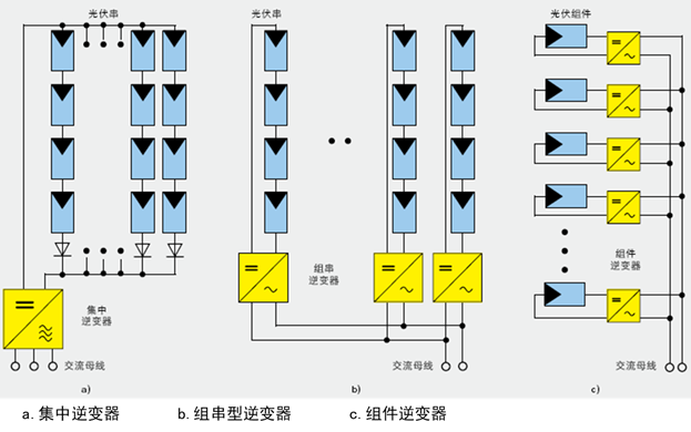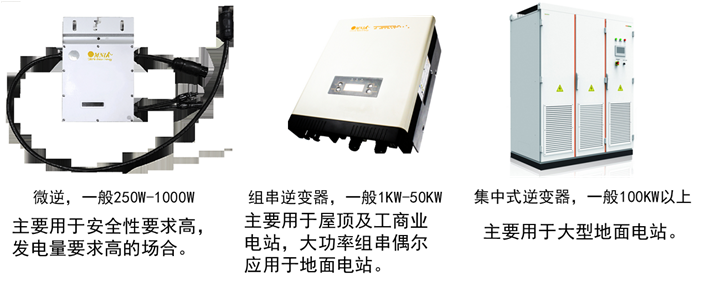 逆变器按照功率等级来分一般分为微型逆变器,组串式及集中式逆变器。