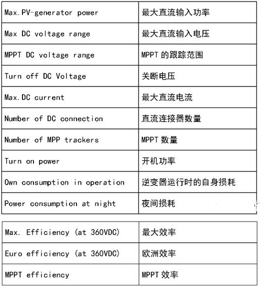 2:最大输入电压:逆变器最大输入电压,组件的开路电压不能超过该电压,否则会引起逆变器损坏。
