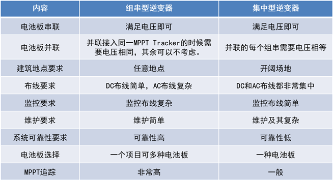 组串型逆变器和集中型逆变器优缺点对比: