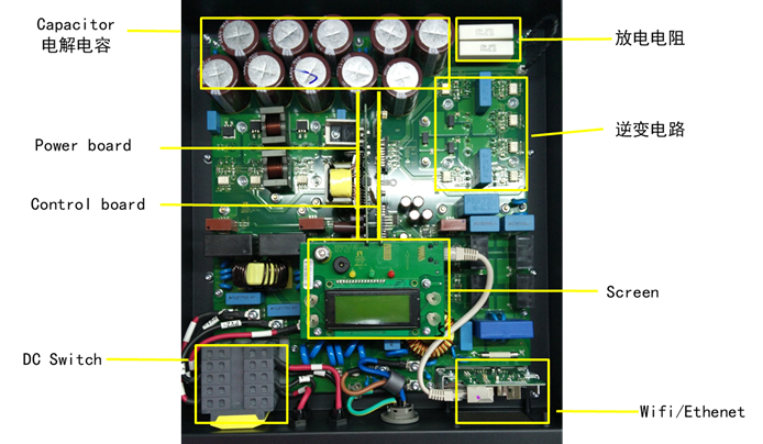 逆变器主要组成部分可分为,外壳及端子,散热器,显示屏,控制板,电源板,功率板。