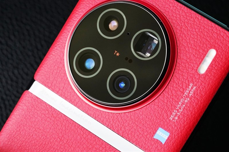 镜头模组由5000万像素蔡司一英寸T*主摄+5000万像素大光圈50mm定焦大师摄像头+4800万超低畸变超广角摄像头+6400万潜望式长焦摄像头组成的四摄方案,右侧的孔内则是dTOF激光对焦传感器,表面使用了蔡司T*光学镜头及镀膜工艺,能有效减少杂光鬼影。
