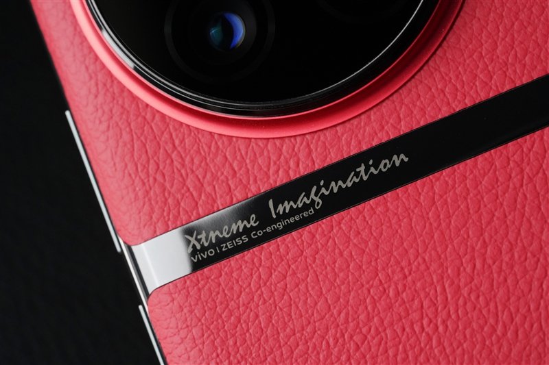 vivo X90 Pro+的后盖表面采用了荔枝纹路的素皮材质,也是行业首次运用腰线与皮革的组合,中间以缎带云阶,将手机的摄像区与握持区以黄金比例区分开来。