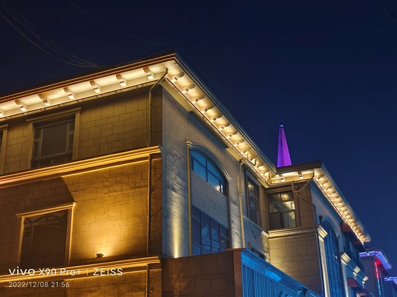 如果想要拍远处摄建筑的细节,那么就非常合适用潜望式长焦,即便是以往长焦最容易翻车的夜色中,它在成像效果也非常让人满意,无论是宽容度、色彩风格、解析力等,都可以说与其它镜头并无二致。