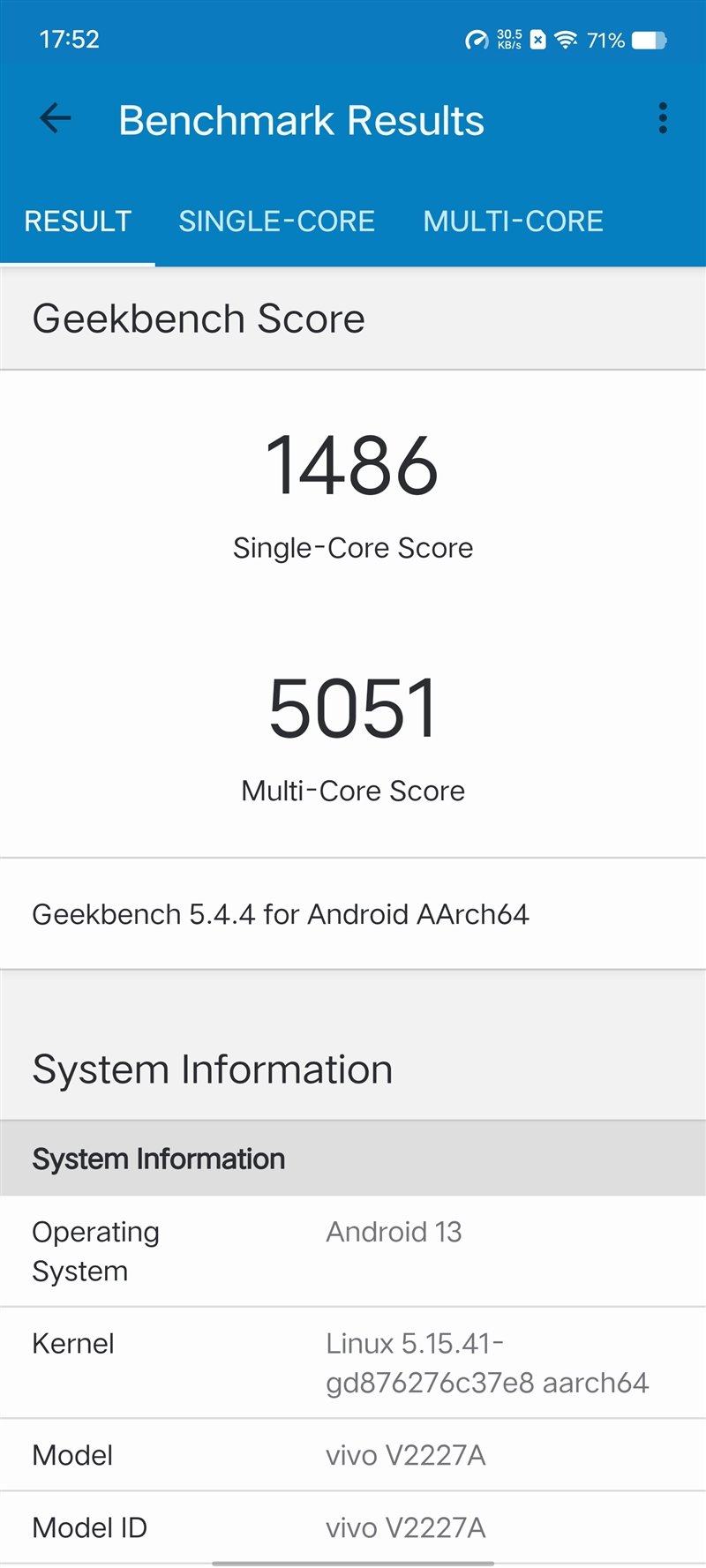 在GeekBench 5中,vivo X90 Pro+搭载的第二代骁龙8的单核成绩为1486,多核5051。