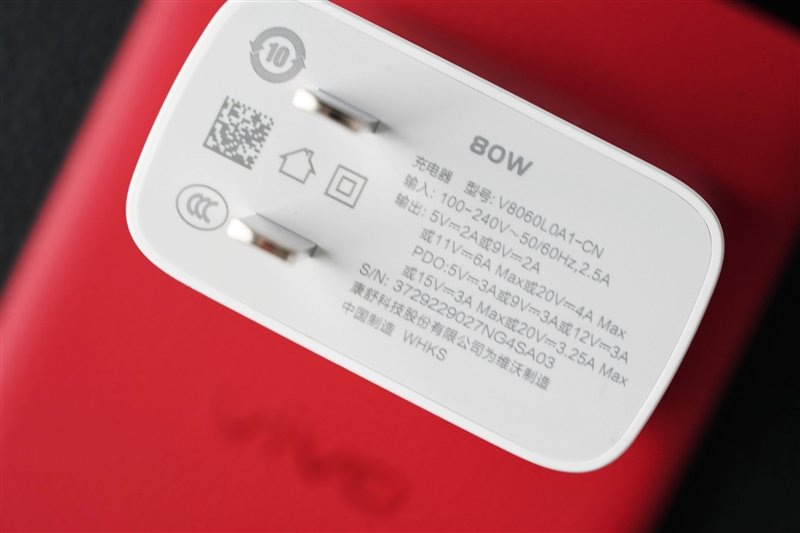 包装内附带的80W充电器,可为vivo X90 Pro+提供FlashCharge快充。