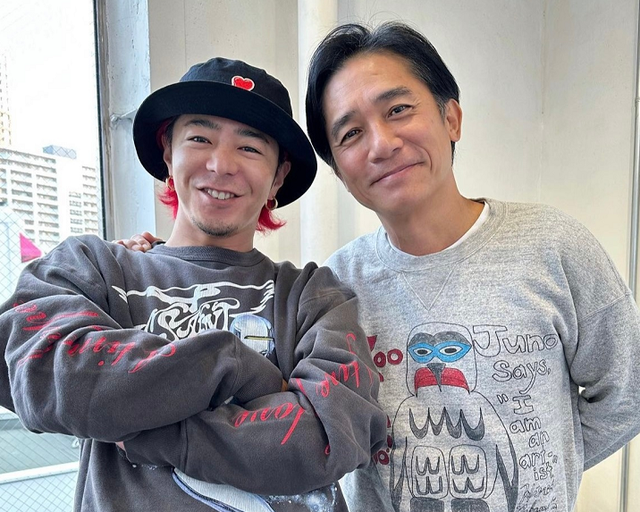 从合影照中可以非常清楚地看到,梁朝伟在穿着打扮方面还是比较中规中矩的,而陈冠希却依旧保持着一颗年轻人的心,反戴棒球帽,一身潮流装,笑得特别的开心。