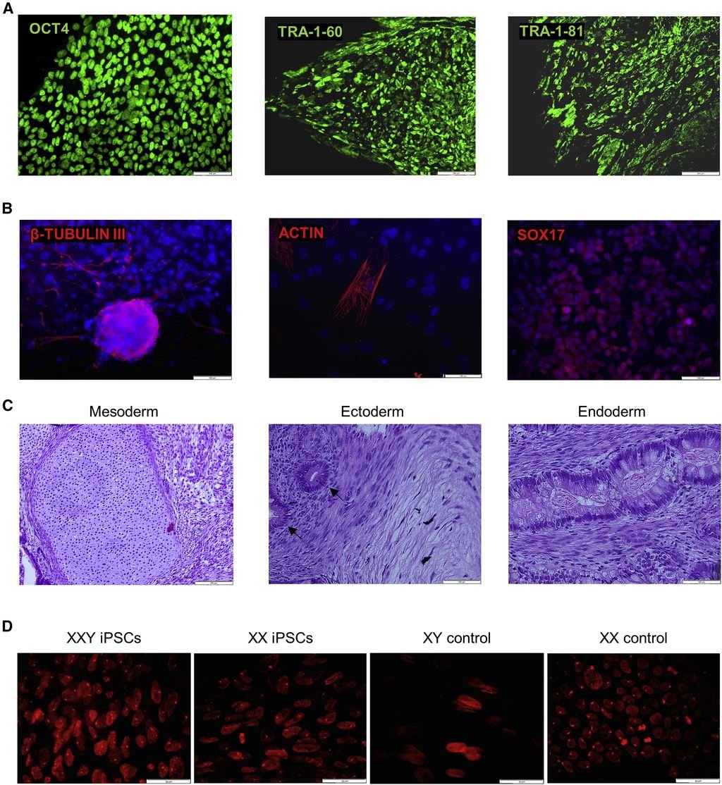 这些细胞来自科里尔医学研究所的储存库 (Coriell Institute for Medical Research),人们在那里捐赠样本用于广泛的生物医学研究项目。研究人员将 3 个性染色体(XXY)重新编程为诱导性多能干细胞(pluripotent stem cells),这些细胞具有自我更新的能力,并能发育成神经元、肌肉细胞或其它细胞类型。