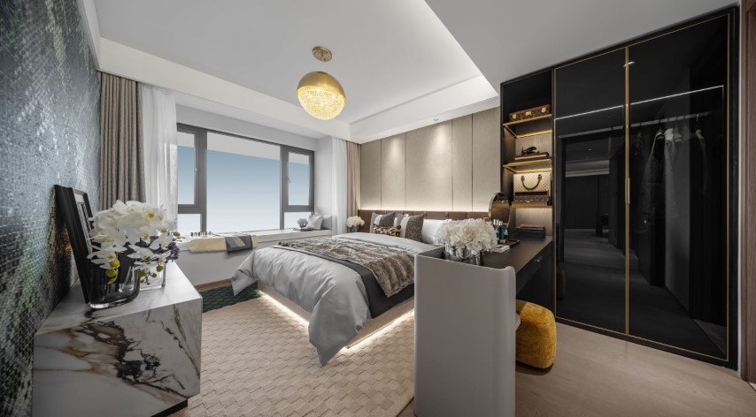 私域空间,玺宸上院配备酒店套房式主卧,带步入式衣帽间和可容纳双面盆进深的卫浴间,清晨和睡前的私人时间同样惬意,打造出豪宅般的私域领地。