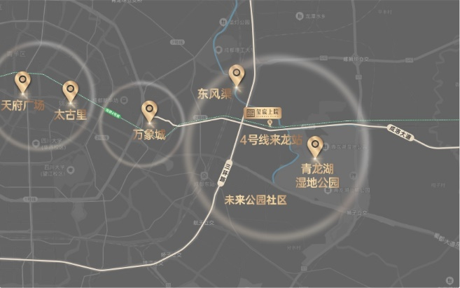 一是符合城市发展脉动的规律,在成都东进的道路上,玺宸上院所在正是东三环核心区域,地铁三站万象城,滨江天街、339商圈、太古里均在日常生活半径之内,商业、交通、医疗一应俱全。