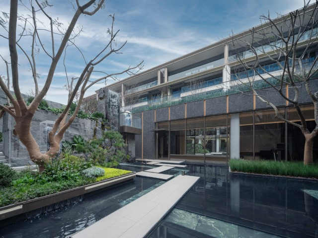 整体的项目空间设计上保持纵横轴线序列,对称式的轴线布局围合多重院落空间,鲜明对称的空间轴线营造出引人入胜的仪式感和端庄大气的豪宅气质。