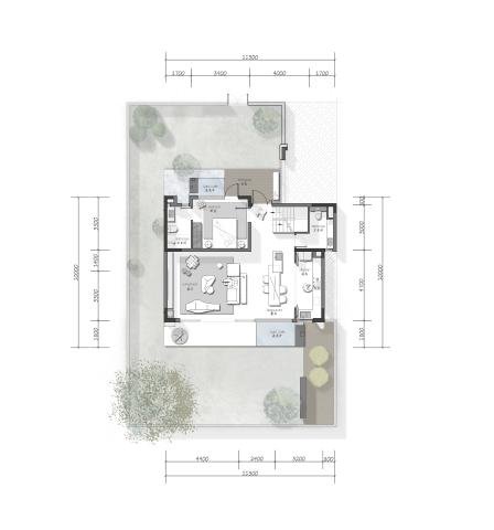 下叠产品保留了完整的南北入户花园,户户面积超过100㎡。从入户到后院保留了充分的户外可改造空间,不夸张的说,就算你想打造完整的山水园林在家中,也不会被户型的设计破坏其动线。