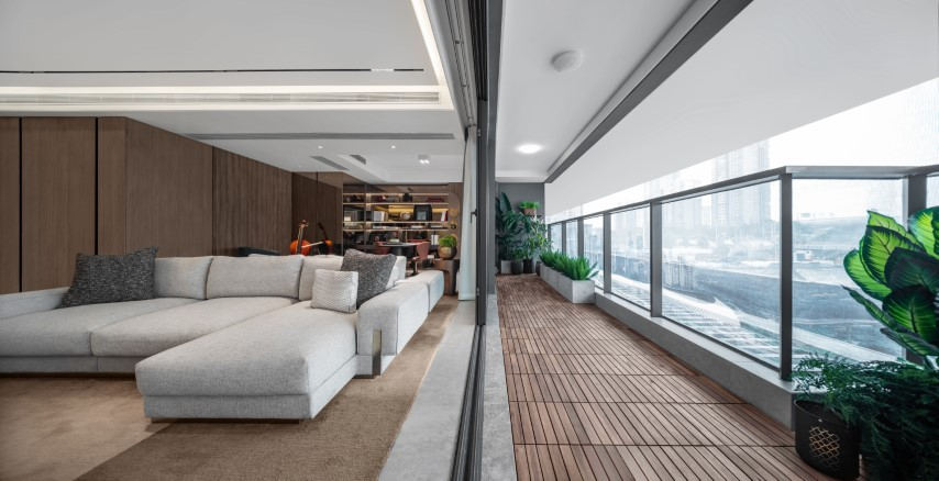 阳台设计达到了约8.9米宽,局部进深更是达到2.4米,退台式开阔空间让阳台拥有更多的置物能力,绿植、躺椅、小吧台……这就是你的专属“游艇甲板”。