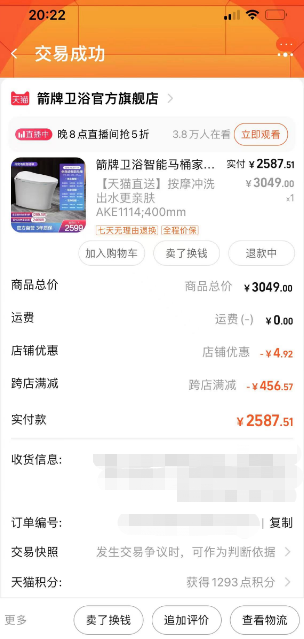 今年8月,安徽合肥的邓女士在天猫箭牌卫浴官方旗舰店花费2500多元购买了1款箭牌智能马桶(于9月完成安装)。12月初,她住进新房后发现马桶边有漏液的情况,地面经常出现一滩水。