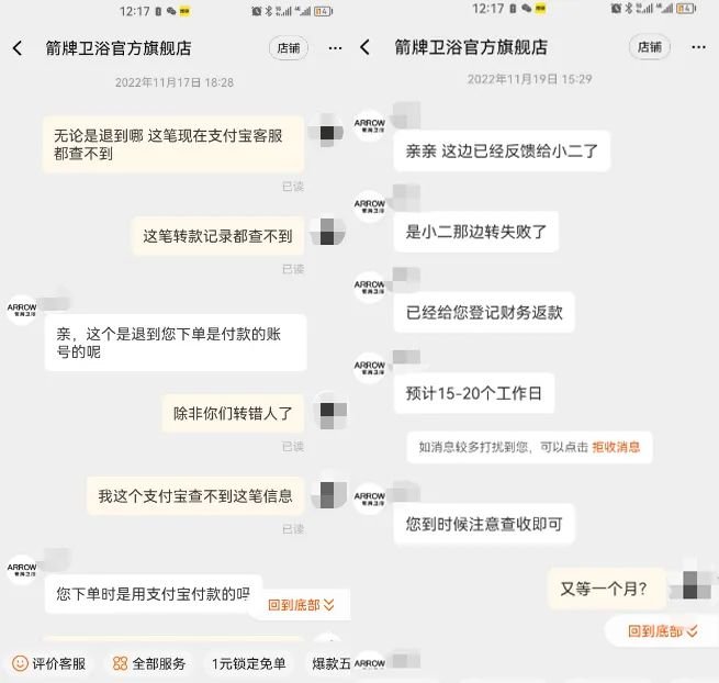“春天发生的事,到冬天都没有退款成功”。近日,天津的关先生在天猫箭牌卫浴官方旗舰店遇到了“退款难”的问题。