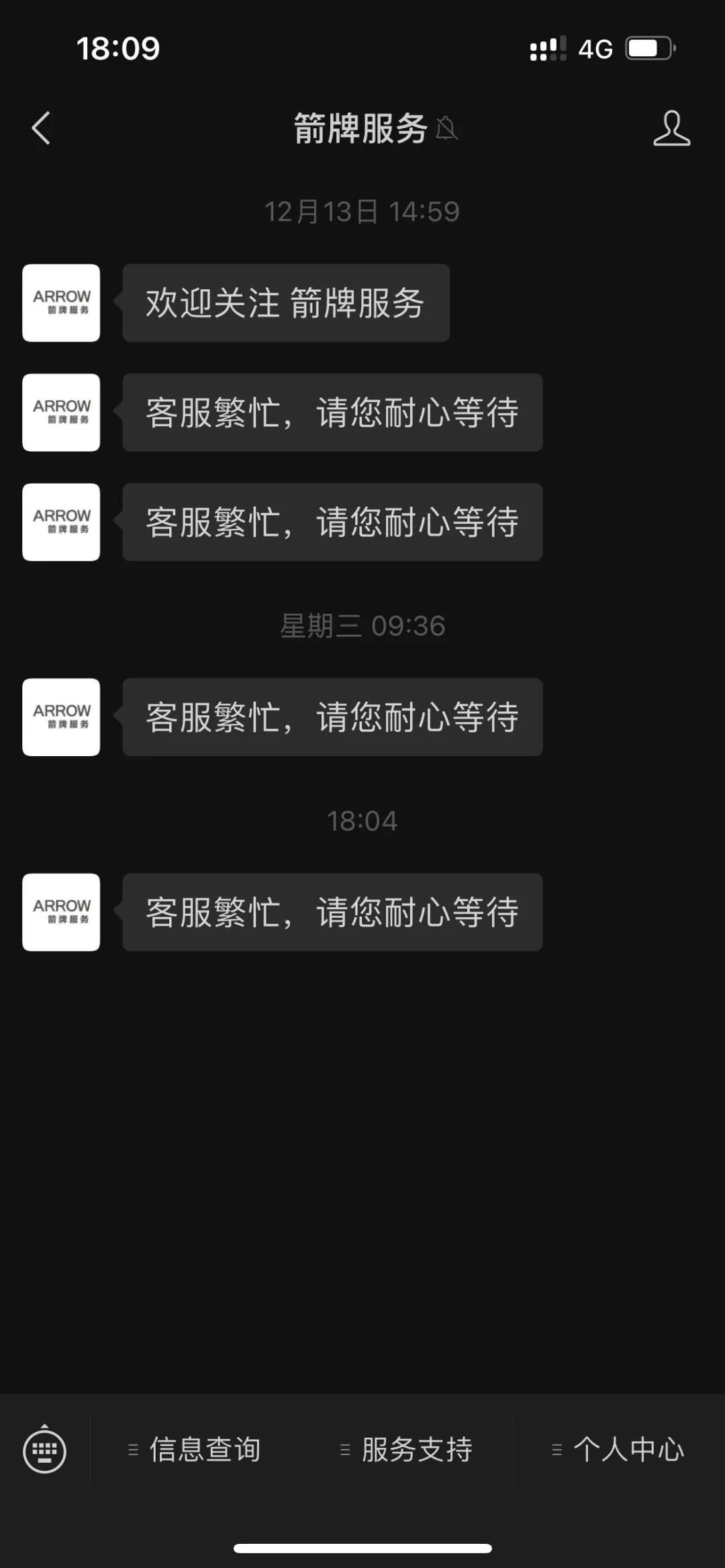 值得一提的是,记者无法通过“箭牌服务”联系上箭牌家居的在线客服,每次寻找,都只获系统回复“客服繁忙,请您耐心等待”。
