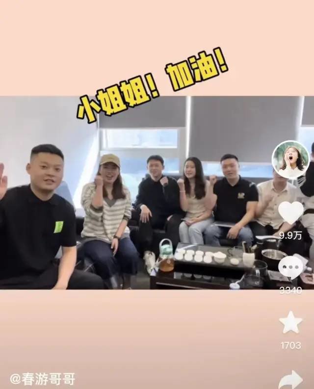 她还不忘拉上朋友,一起为女孩加油打气。