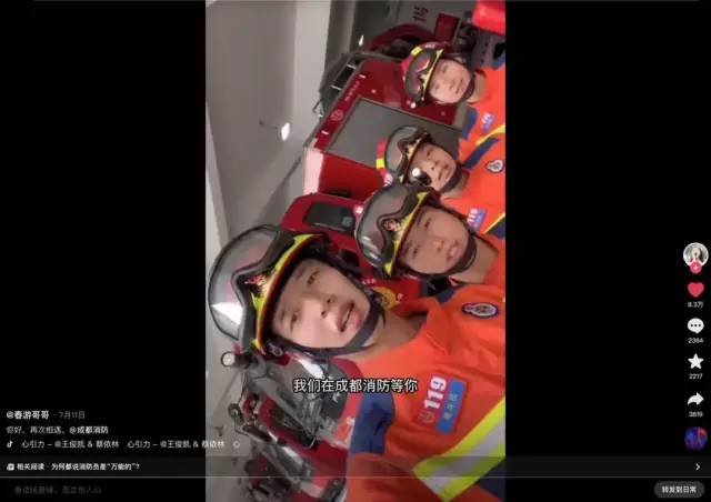 没想到,“成都消防”官方账号看到后@牛钰,邀请她参加直播活动。