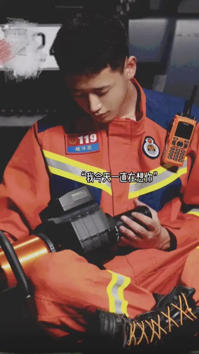 爱情像一束光。小哥穿着的消防制服,是这束光里最亮眼的橙色。