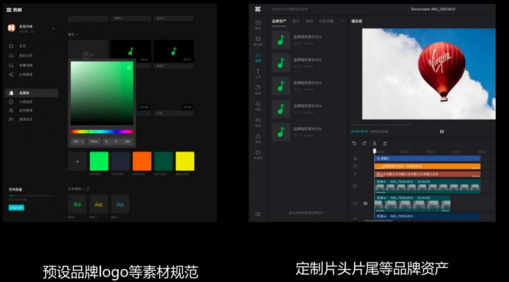 “每个企业在视频创作中都有很多要求和标准,这些内容在视频资料的创作过程中上传下达往往费时费力,需要反复校对。”张逍然介绍。对此,剪映推出了品牌资源库,企业可在资源库中即时更新各类视觉素材,包括logo、贴纸、字体、音乐等,避免反复确认设计需求。用户还可以用团队模块功能创建团队视频模板,团队成员可以对照示例边看边拍,并支持个性化修改,以便快捷批量生产具有统一标准的优质视频。