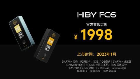 IT之家了解到,海贝 HiBy FC6 将于 2023 年 1 月上市,售价 1998 元。