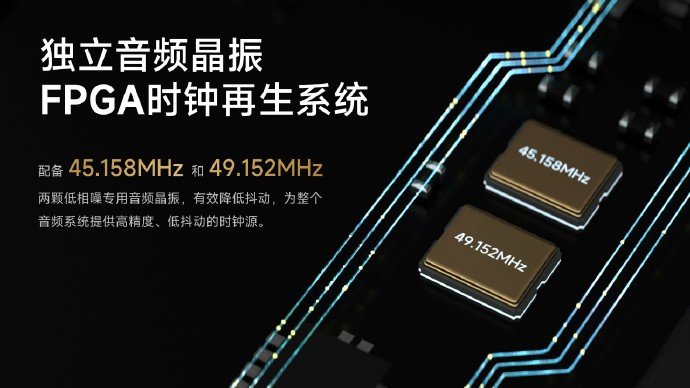 HiBy FC6 DARWIN 架构最高可达 16 倍超采样,有多种定制滤波器可选,适配不同音乐风格。该设备搭载 2 颗 OPA1622 耳放芯片,4 通道独立电流放大耳放,独立音频晶振 FPGA 时钟再生系统配备 45.158MHz 和 49.152MHz 两颗低相噪专用音频晶振,有效降低抖动。