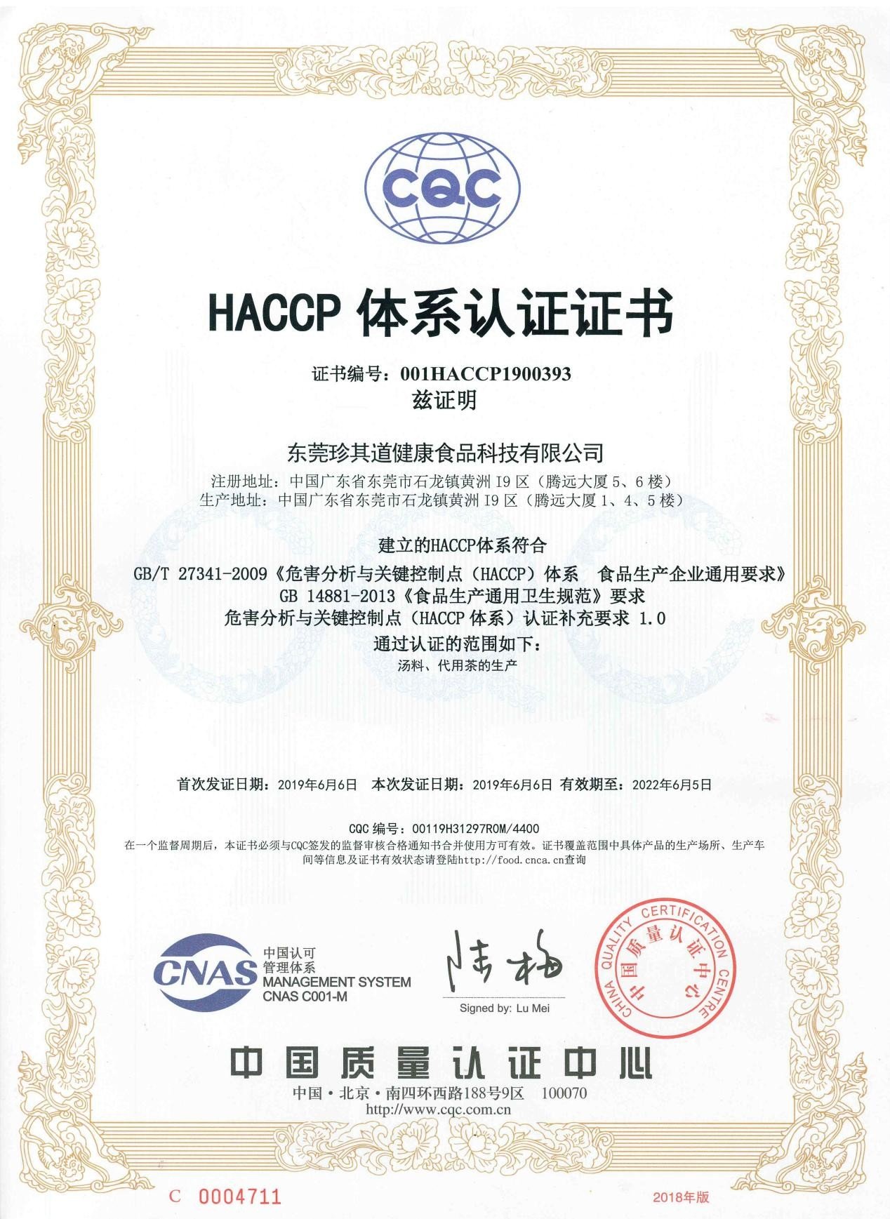 2019年 成功取得HACCP体系认证通过,同年被邀请出席上海中国国际食品和饮料展览会。