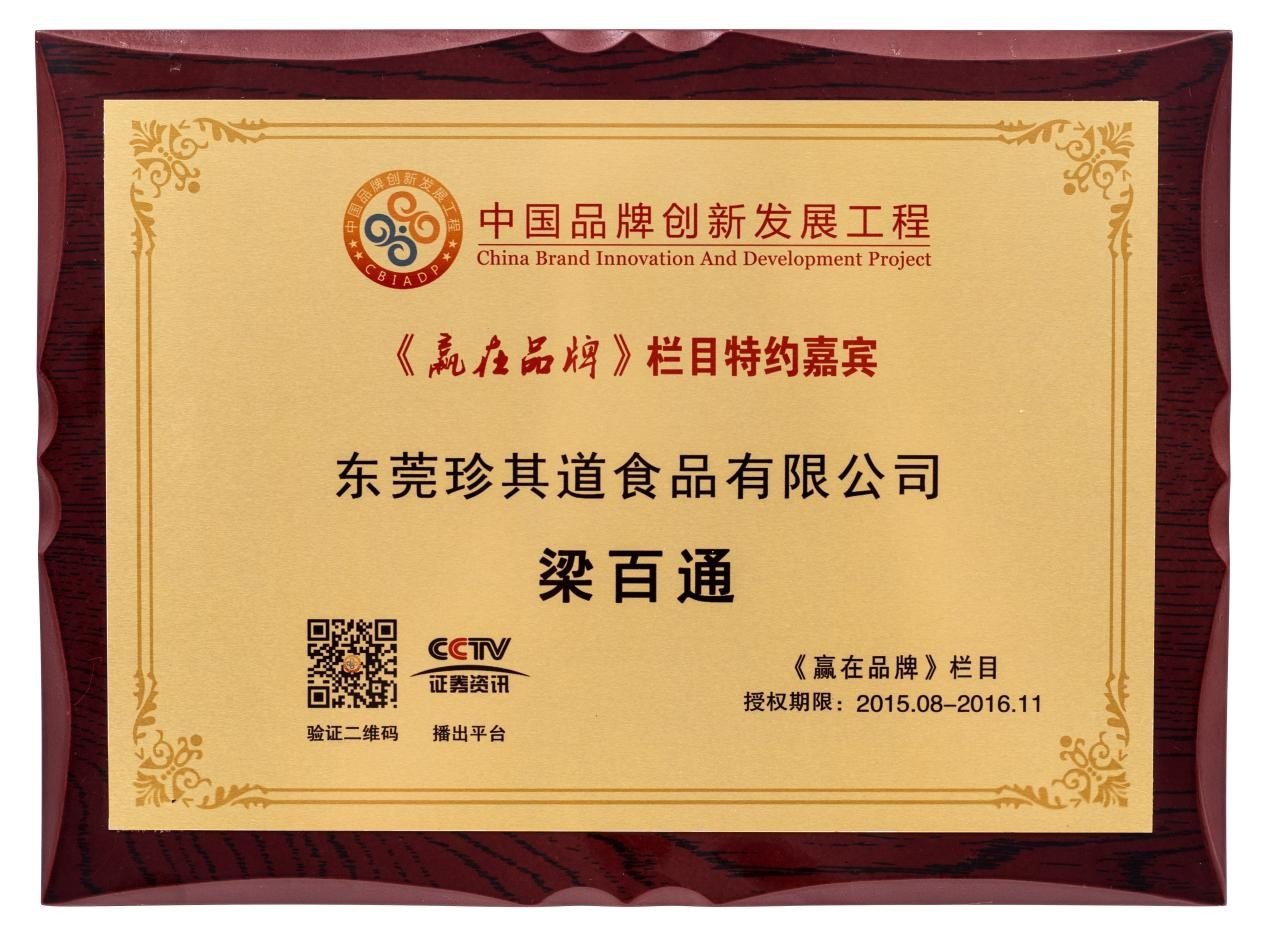 2022年12月东莞珍其道健康食品科技有限公司入围新华社客户端乡村振兴频道《了不起的国货》栏目。