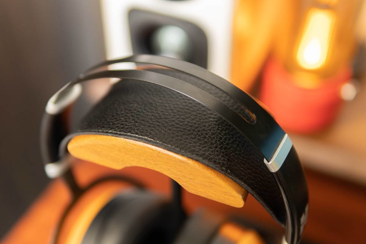在佩戴体验上,头梁部分采用了比较经典的混合设计,黑色哑光质感与木碗搭配视觉观感不错,贴合头部的部分采用了荔枝纹皮的材质,美观的同时保证了佩戴的轻量化和稳定性。