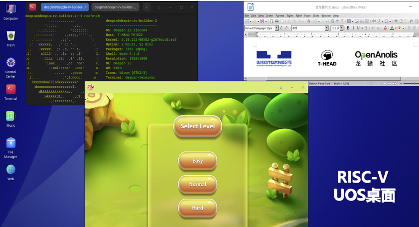 比如,在今年8月的2022 RISC-V 中国峰会上,平头哥完成了 RISC-V 与面向云端服务器的龙蜥操作系统的适配,首次运行 FireFox 浏览器、LibreOffice 等大型桌面级软件,以及 Hexo 和 Open Rocket 等基于 NodeJS 和 JAVA 的应用,极大拓展了 RISC-V 的想象力。今年9月,平头哥、龙蜥社区、RISC-V国际基金会、中科院PLCT,与统信软件展开合作,成功地在平头哥RISC-V SoC原型曳影1520上启动了deepin 操作系统,流畅运行桌面、办公、影音及开发等关键大型软件,将RISC-V推向桌面端。Deepin V23正式发布的时候,RISC-V也将作为一个官方正式支持的架构存在。在移动端方面,今年10月,由阿里巴巴平头哥贡献的RISC-V移植安卓的代码补丁集合,被安卓AOSP社区收录进系统源代码,成为全球首批RISC-V兼容安卓的正式补丁,这意味着谷歌安卓开启了对RISC-V架构的官方原生支持。