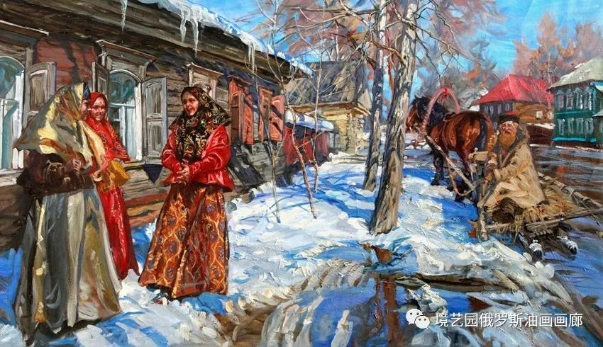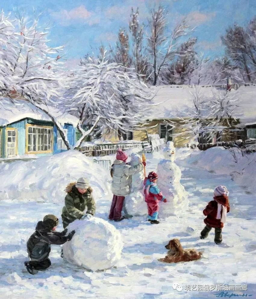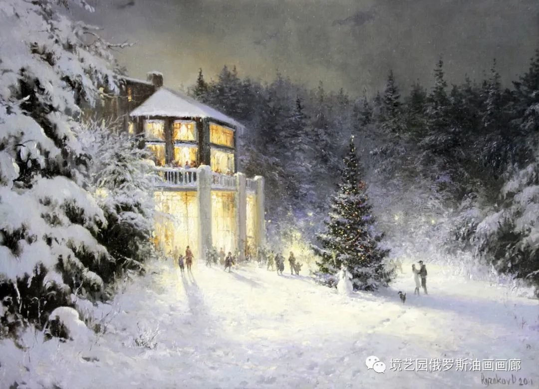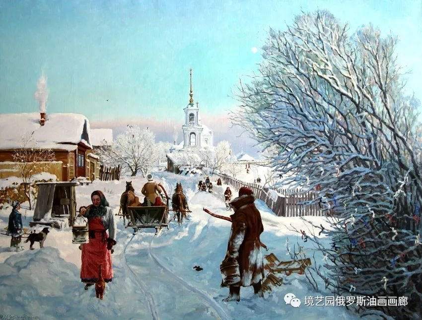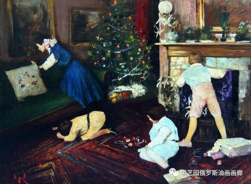 谢尔盖耶夫说:我想要在画中表达童年时盼望圣诞到来的感受。在那些天,大人把我们这些小孩赶到屋外玩耍,免得在屋里妨碍过节前的准备。