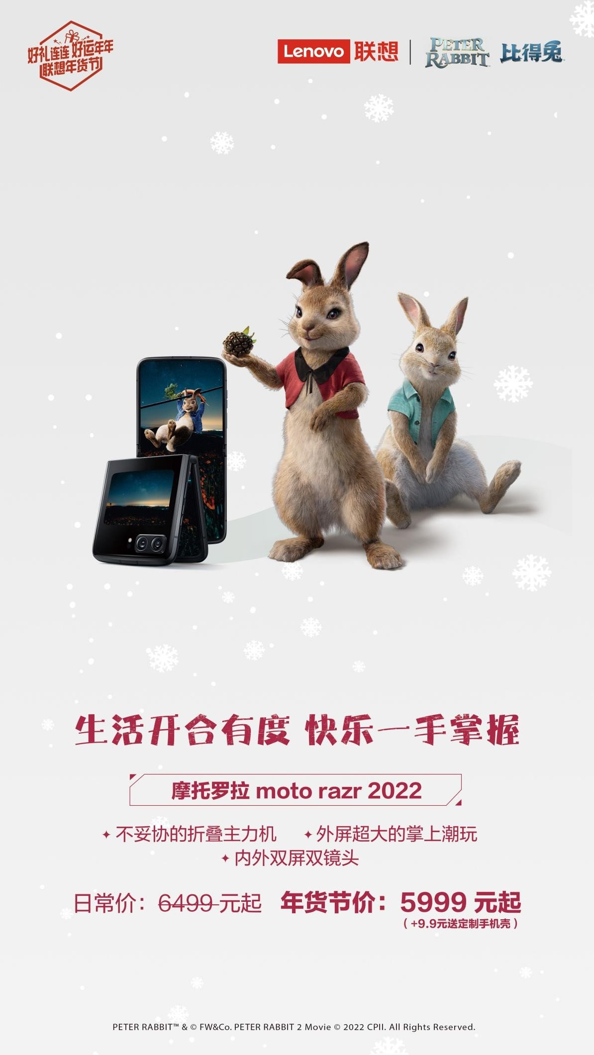 大红大紫的联想moto razr 2022,当然也是年货节的爆款单品!该机有2.7英寸的超大OLED全功能外屏,很多日常功能都能在这块屏幕搞定,高效又方便;内外双屏+双镜头更是玩转自拍摄影,取景拍摄特别方便,“自带三脚架”释放灵感。而骁龙8+强悍加持,玩《原神》都稳稳拿捏,5999元的起步价让尝鲜门槛超低的。