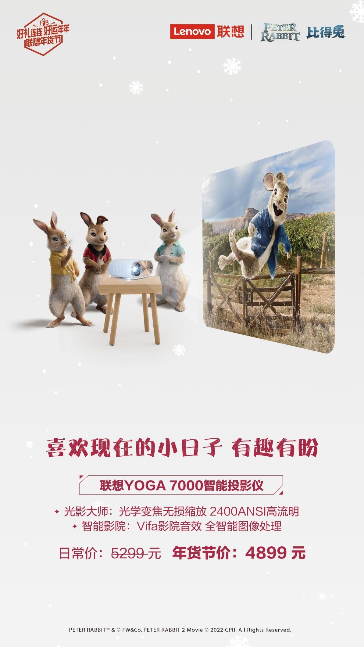 辞旧迎新,云卷云舒,又是一年。在即将到来的兔年,愿父母福禄欢喜,遇兔呈祥;愿孩子以梦为马,动如脱兔;愿自己眉目舒展,福兔临门。联想年货节持续火爆,愿大家都能选到最中意的那个款!