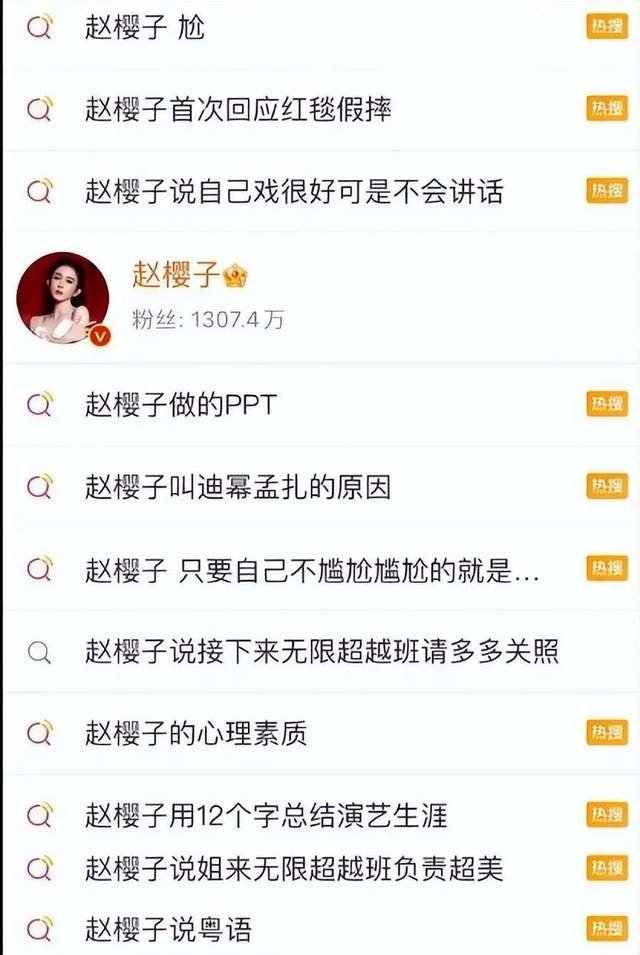 紧接着,有关赵樱子的热搜便一个接一个,从她红毯摔倒到如今靠着尴尬炒作,赵樱子不是被骂就是在被骂的路上。