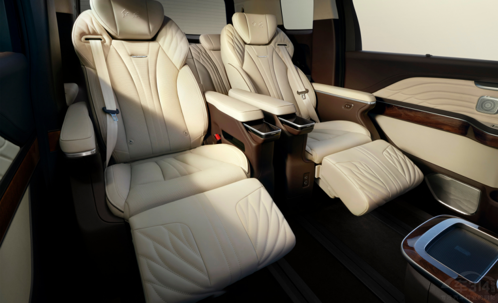 在第二排方,两个独立航空座椅配备有多项电动调节、腿托、通风等功能,还有着小桌板功能,方便用餐或办公。