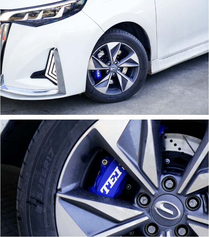 传祺m6原厂刹车仅配单活塞浮动式卡钳,以及搭配实心不散热的295MM常规碟盘,车主反馈原车的刹车很软;而升级TEI Racing刹车后,不会出现原车那种软绵绵的感觉,比原厂刹车反应快、脚感更线性。