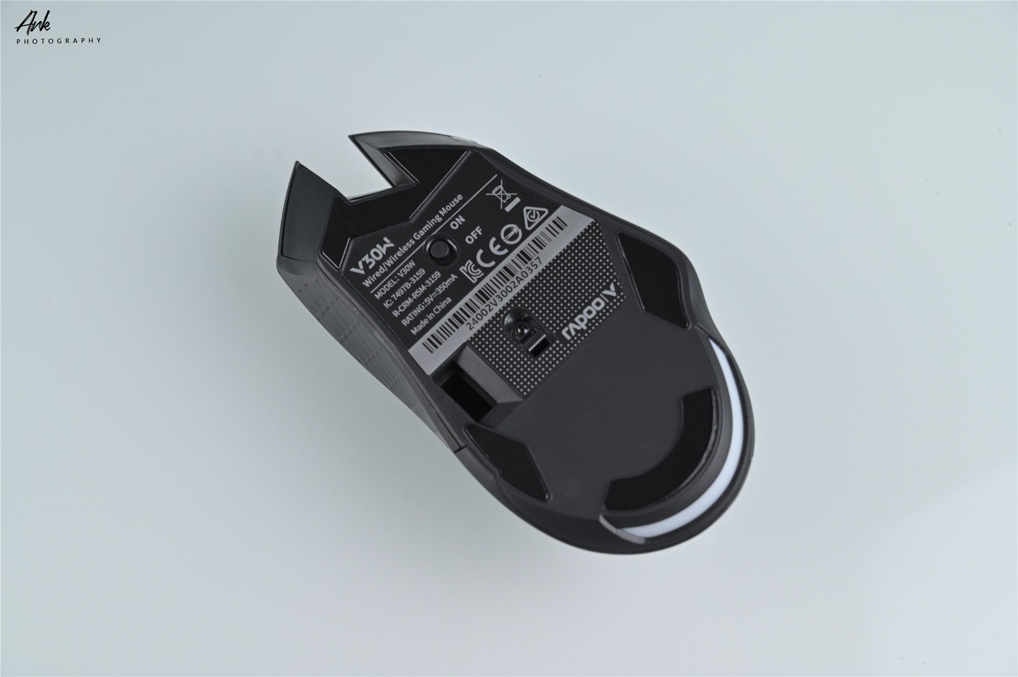 底部依然有乾坤,雷柏V30W内置欧姆龙2000万次清脆手感微动,触发更迅速,点击力度更均匀,回弹手感更清脆,远超一般电竞鼠标的50万次。