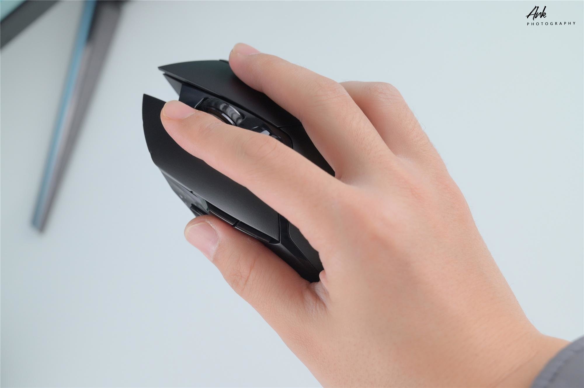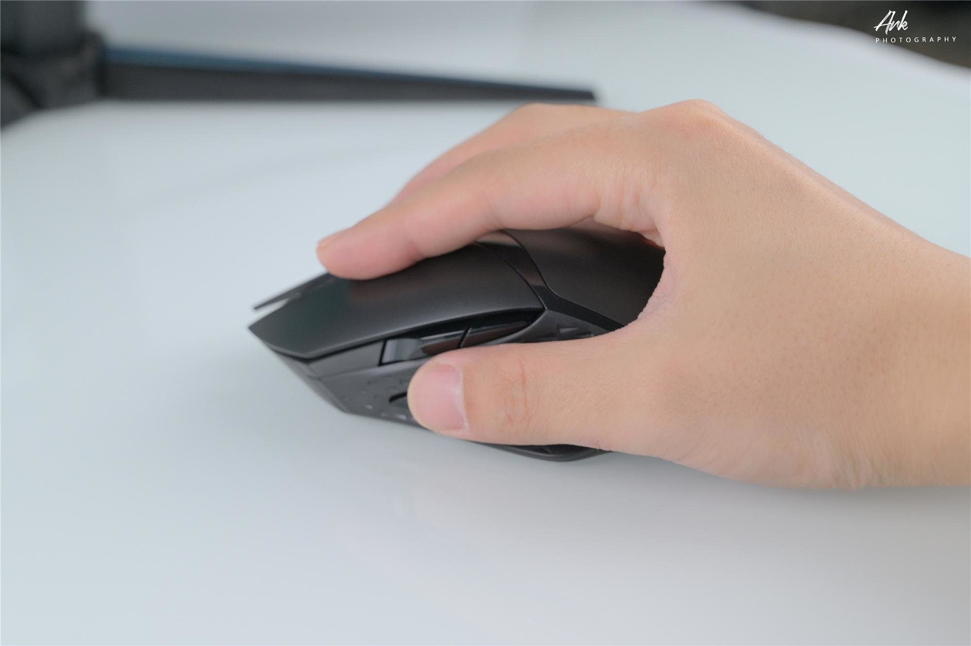 在大拇指位置处,雷柏V30W还贴心地预留了一个侧边键,这对于游戏党来说可谓是常见操作,也是非常实用的设计,比如我们在出招的时候便可以同时使用食指操作拨轮、用大拇指操作侧边按键,避免了食指的来回切换。