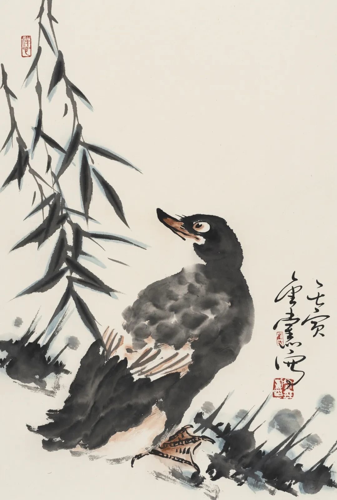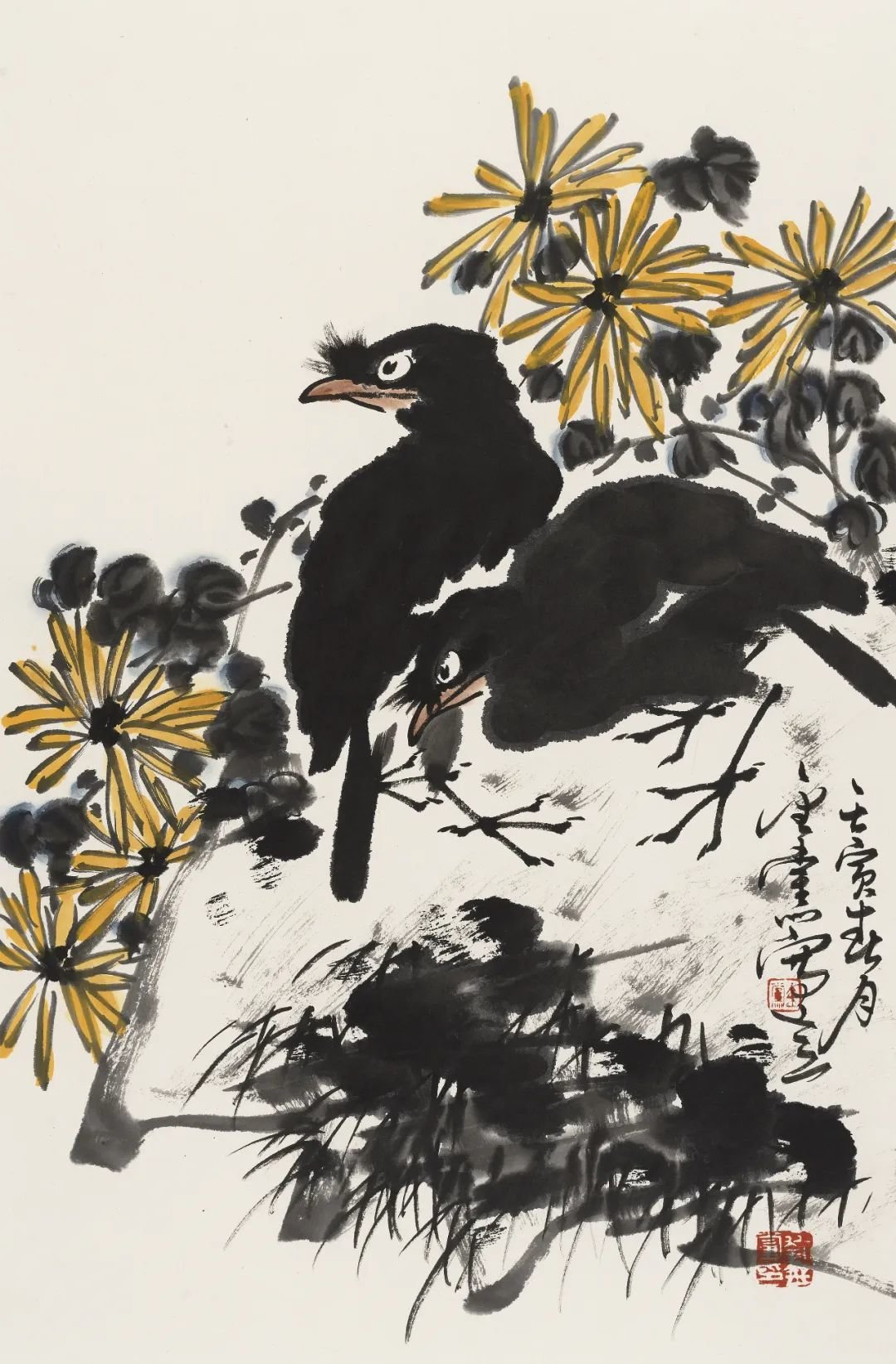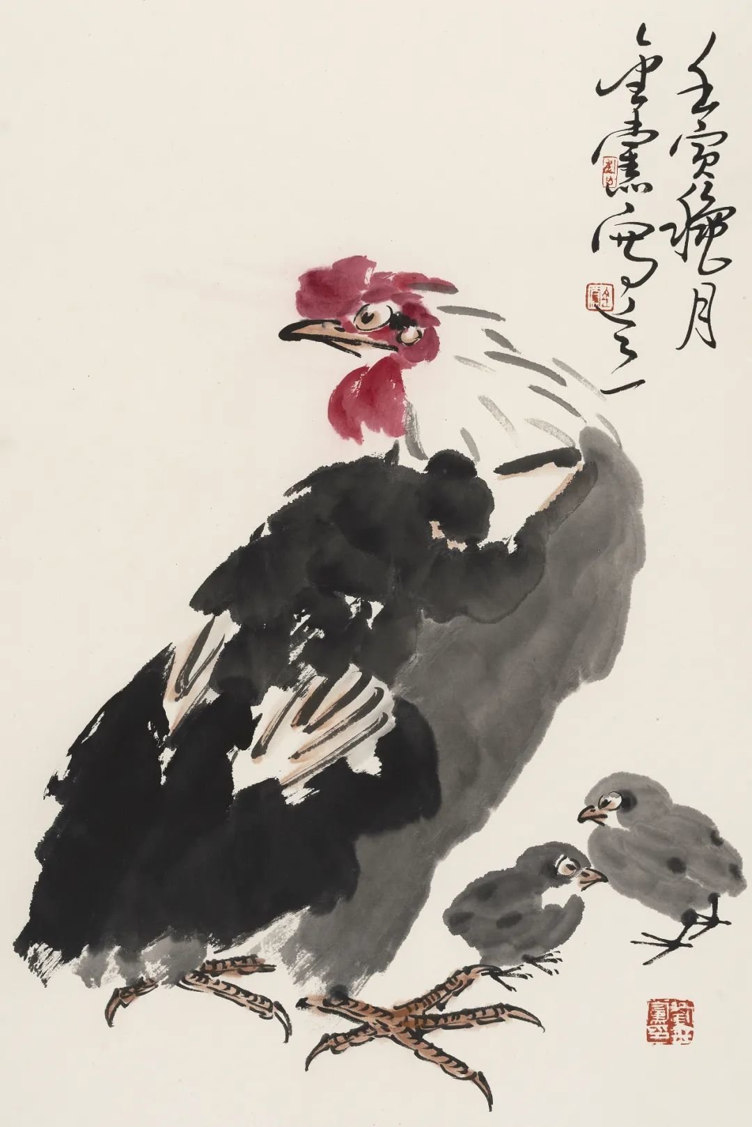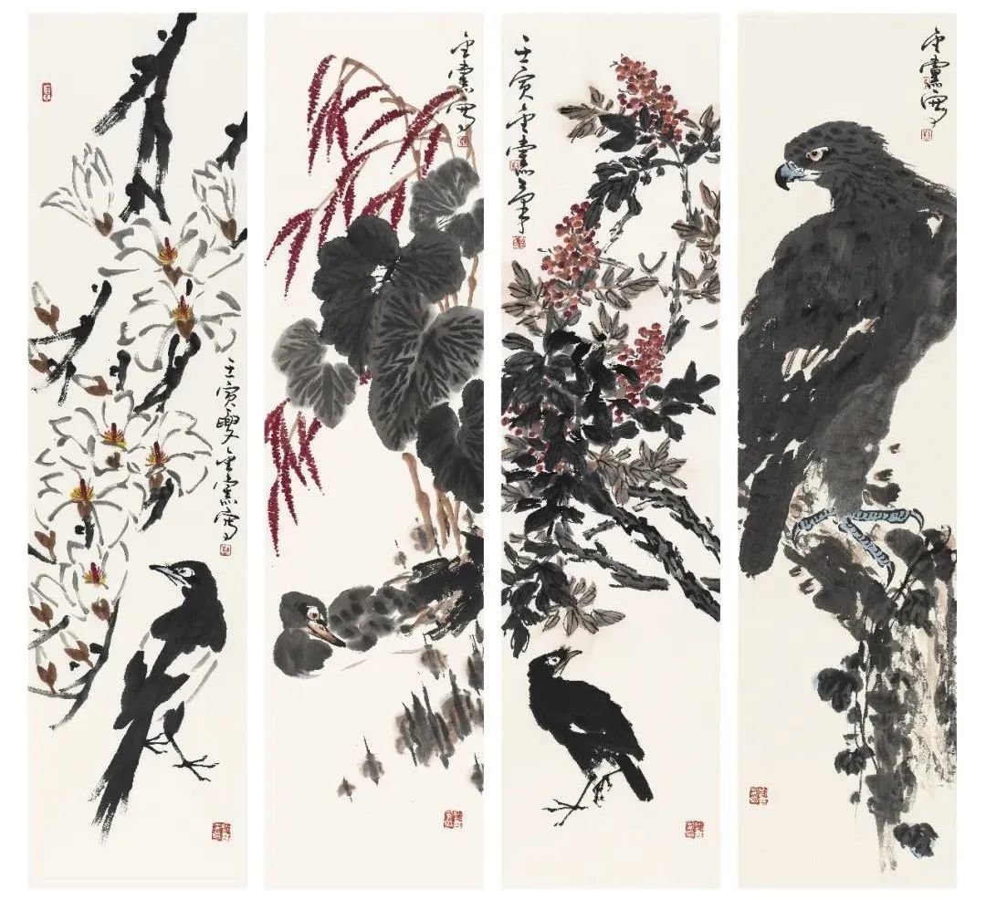 大写意花鸟画在当代是比较边缘的艺术,许多大展中已很少见到传统大写意花鸟画作品,这不能不说是当代画坛的一种现象。苦禅先生曾言:“三年可以培养出一位工笔画家,三十年不一定培养出一位写意画家。”此言对当代艺术界很有思辨意义。当年苦禅先生的大写意花鸟画曾遭遇到种种不公正的对待,后来苦老画了一幅《芭蕉雄鸡》,上面题了一首自作诗:“人道我落后,我处亦自然,待到百年后,尚可留人间。”此诗有真意在焉。至当代苦禅先生已仙逝近四十余年,画家如过江之鲫、恒河之沙,但能如白石老人、苦禅先生之星汉灿烂者寡矣。