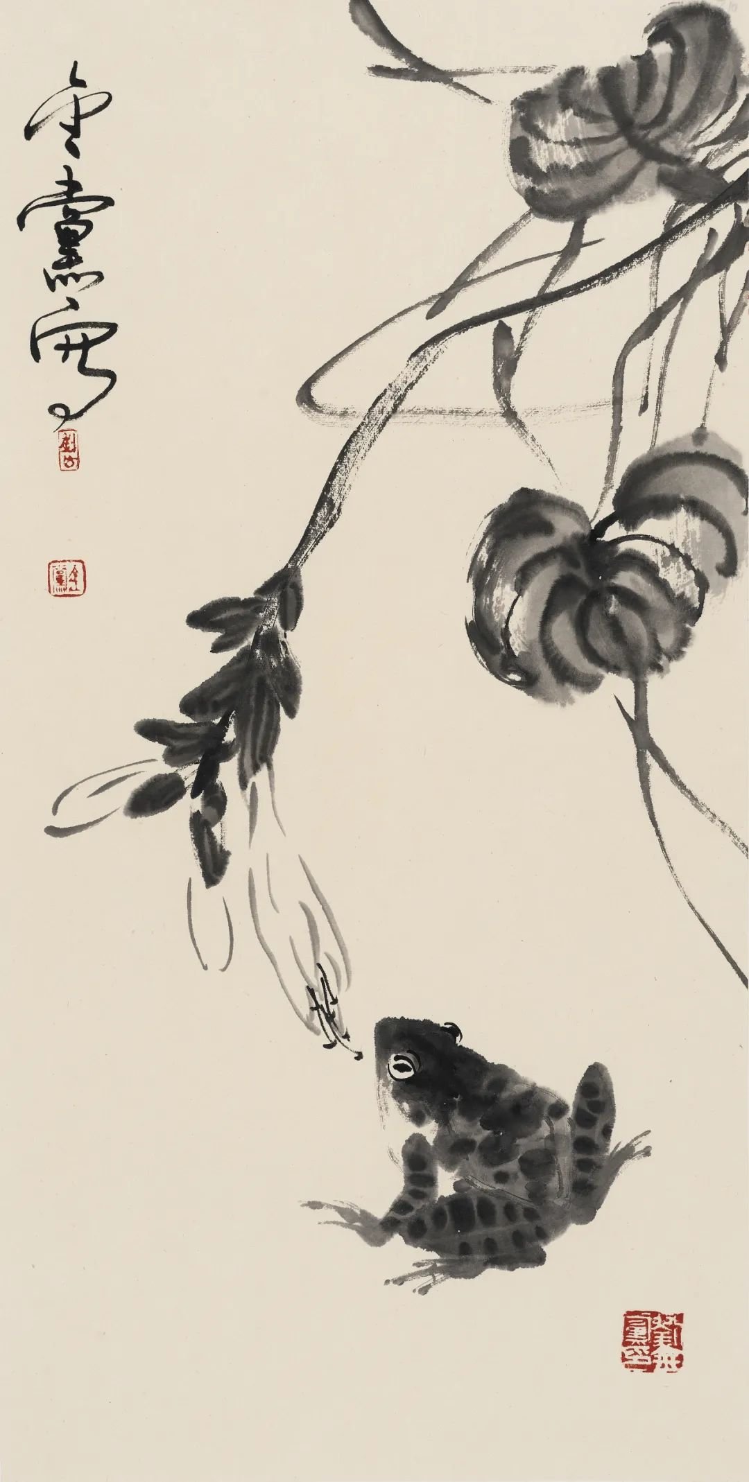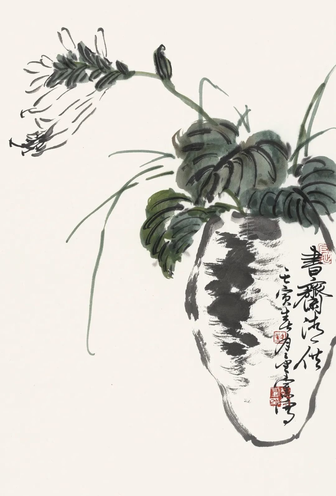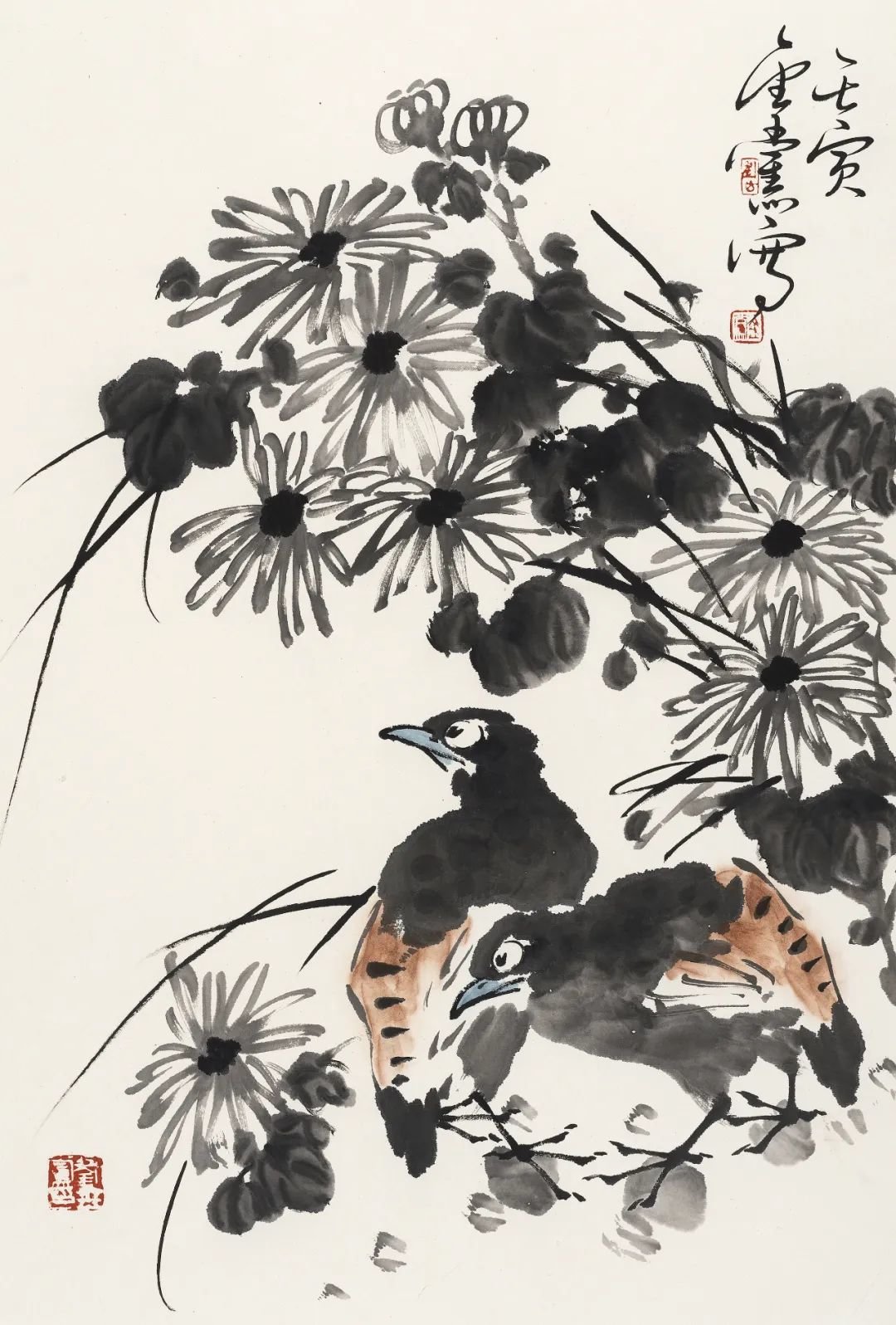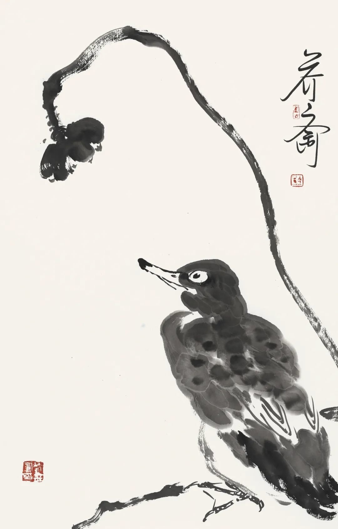 大写意花鸟画在当代是比较边缘的艺术,许多大展中已很少见到传统大写意花鸟画作品,这不能不说是当代画坛的一种现象。苦禅先生曾言:“三年可以培养出一位工笔画家,三十年不一定培养出一位写意画家。”此言对当代艺术界很有思辨意义。当年苦禅先生的大写意花鸟画曾遭遇到种种不公正的对待,后来苦老画了一幅《芭蕉雄鸡》,上面题了一首自作诗:“人道我落后,我处亦自然,待到百年后,尚可留人间。”此诗有真意在焉。至当代苦禅先生已仙逝近四十余年,画家如过江之鲫、恒河之沙,但能如白石老人、苦禅先生之星汉灿烂者寡矣。