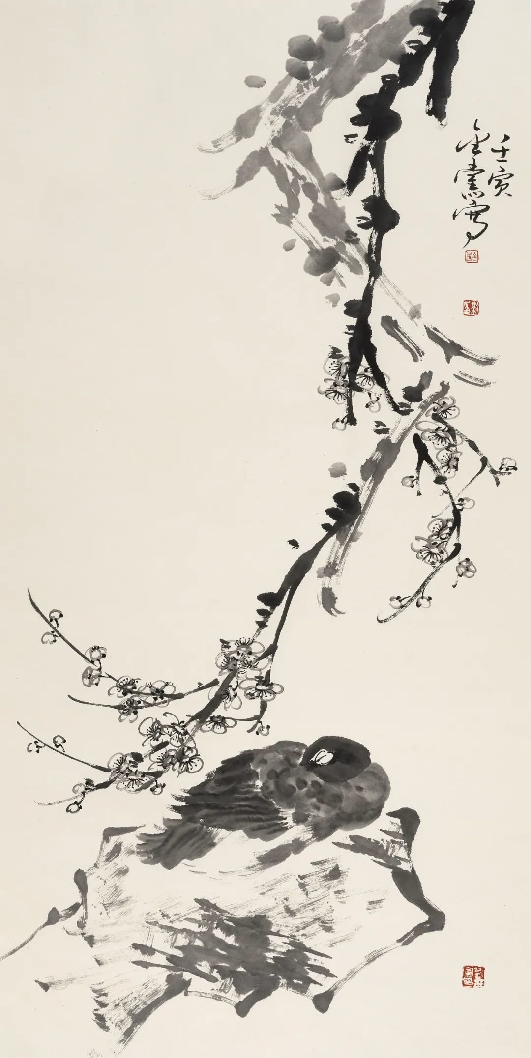 《寒梅孤禽》138x69cm