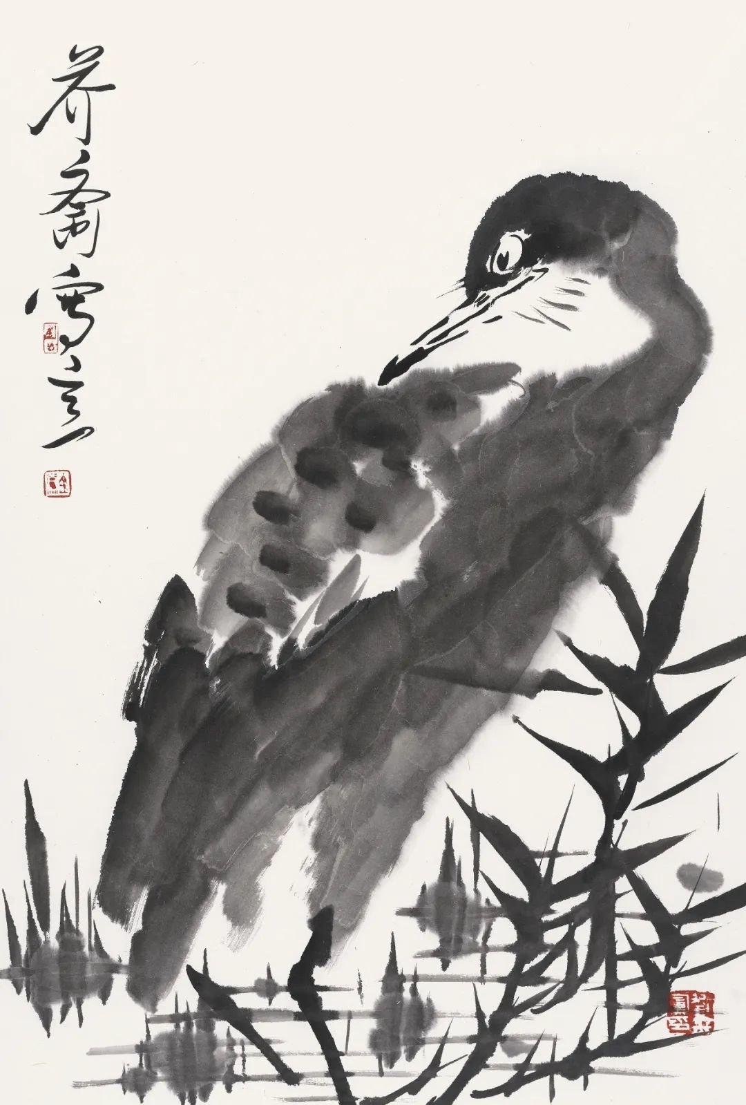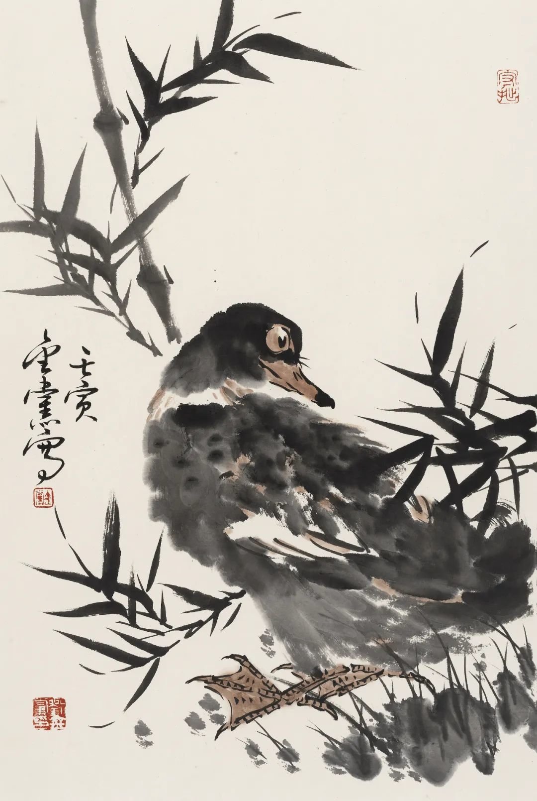 《墨竹野鸭》69x46cm
